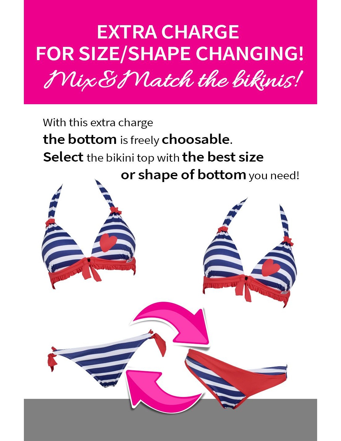 If you want to change the bikini's top and bottom sizes/shape, you need to purchase this service along with the product!