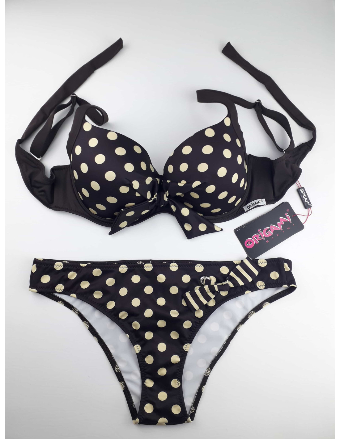 Bottom: Origami Bikini low-rise panty with decorative bow. In case of size 44 the top comes with the bottom sized 42.