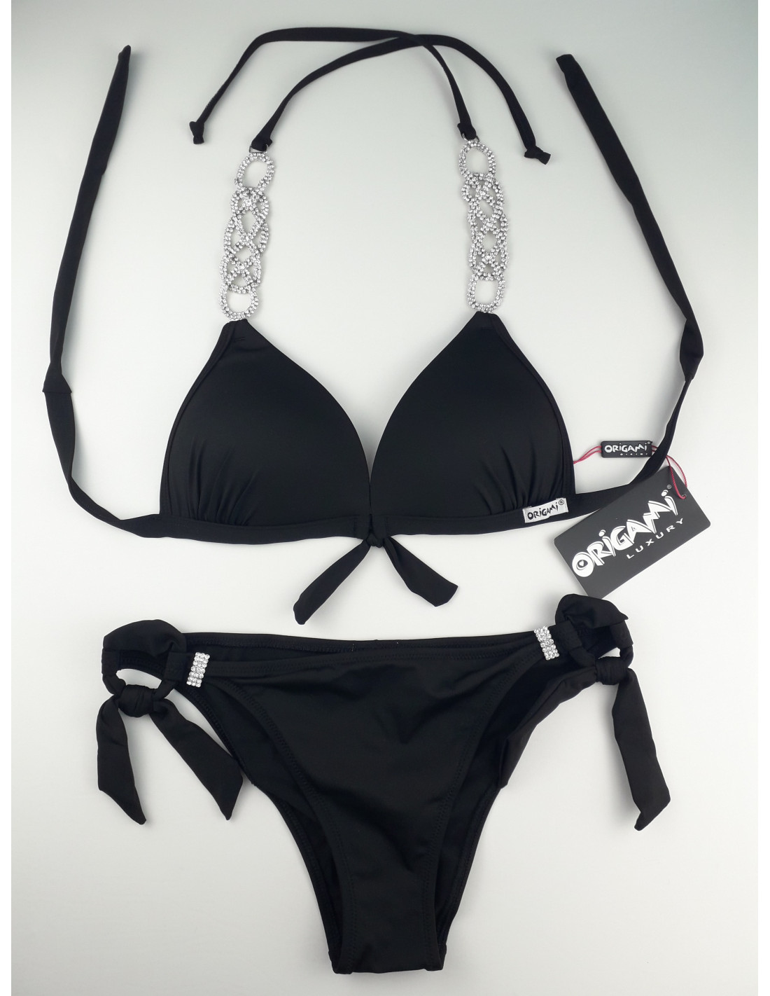 Origami Bikini C-cup triangle bra → Push-up moulded cup, tied at the neck and back, adjustable middle. Decorated with beautiful accessories at the necktop. Always check the bottom size of the top made for it when selecting the size, as it may differ in some cases!