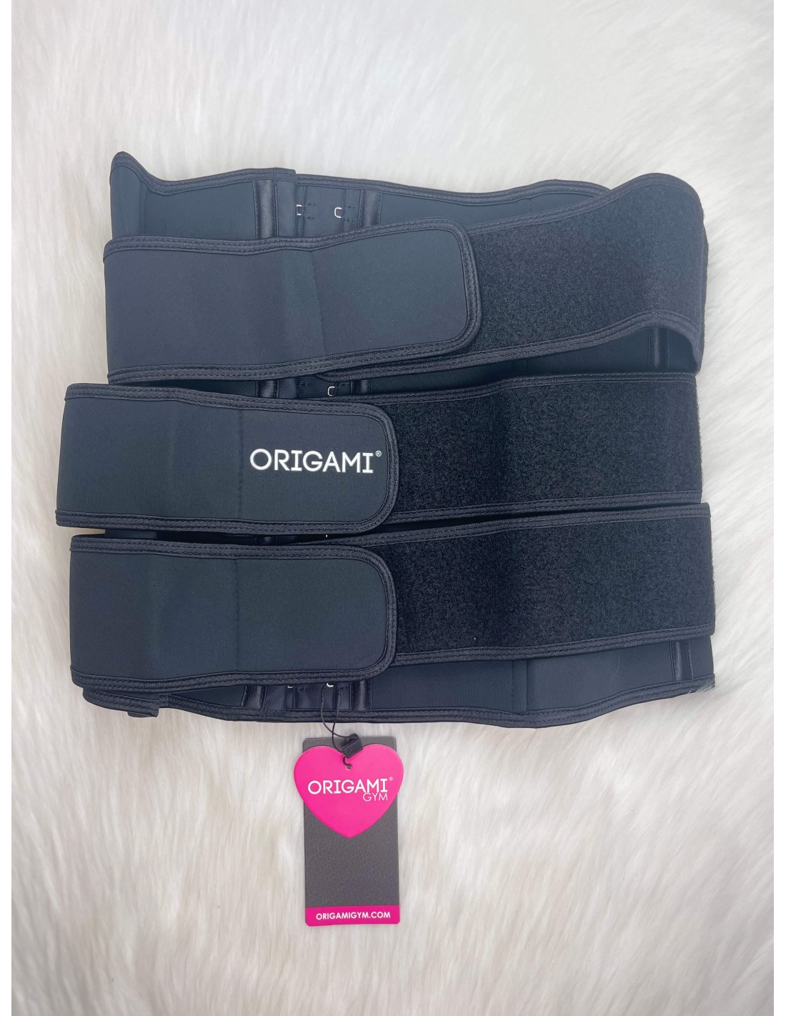 Origami GYM wear alakformáló sportöv, extra 3 db tépőzáras derékpánttal. Fekete színű. Ezért ajánljuk Neked: 9 db rugalmas, hosszirányú merevítő, mely támasztást és tehermentesítést biztosít a derék számára. 3 db extra erős, tépőzáras derékpánt a tökéletes illeszkedésért és a megfelelő tartásért. 3 méretben állítható acél kapocssor. Kiváló neoprén alapanyagból készül, mely fokozza a hőtermelést, így elősegíti az alakformálást. Edzésekhez, derék-, vagy hátfájás esetén a jobb tartás végett, illetve szülés utáni alakformáláshoz is ajánljuk. Széles méretválaszték. A modell 178 cm magas, és M-es méretet visel.