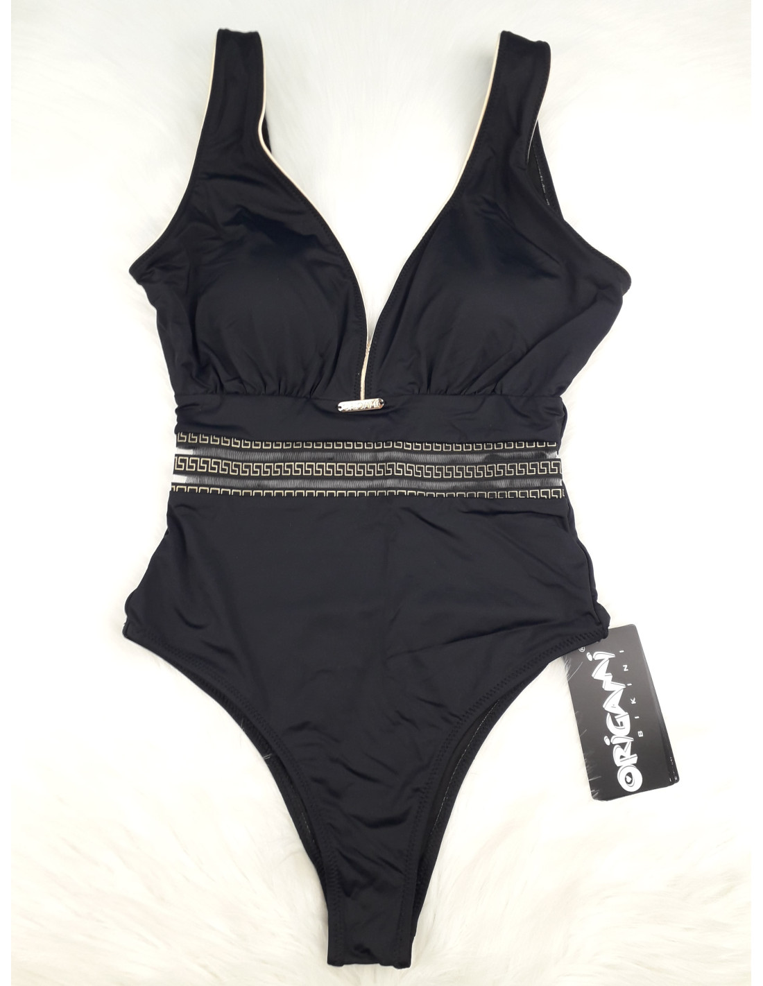 Origami Bikini egyrészes, C kosaras fürdőruha → kivehető szivacsbetéttel, hasrésznél díszítéssel és alakformáló béléssel.